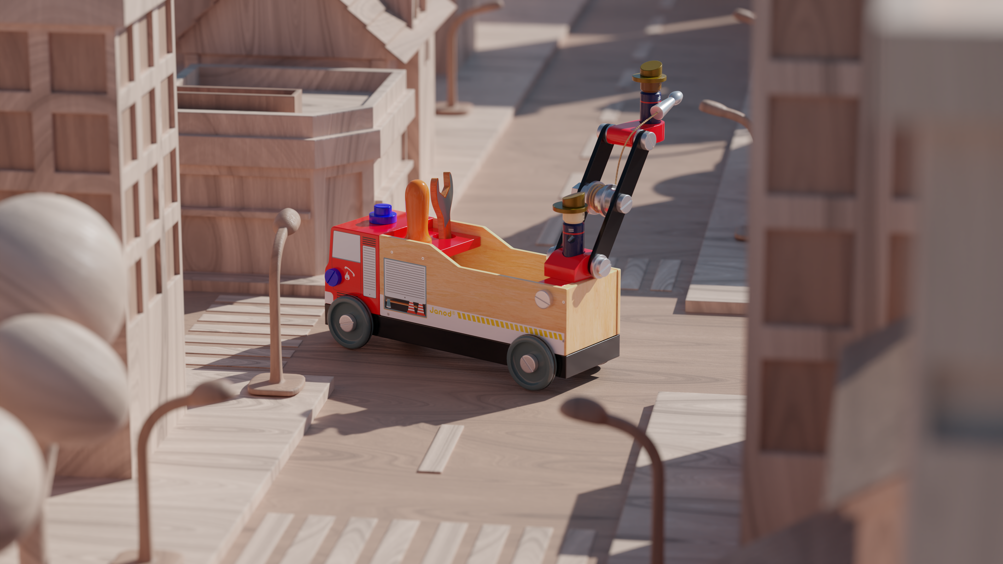<< Back to projects >> Some visuals I made for personnal purpose, inspired by the french toys brand Janod. When I was young, I had so much fun playing with their wooden toys and remaking in 3D their classic firetruck was a way for me to embrace those sweet memories. << Back to projects >>